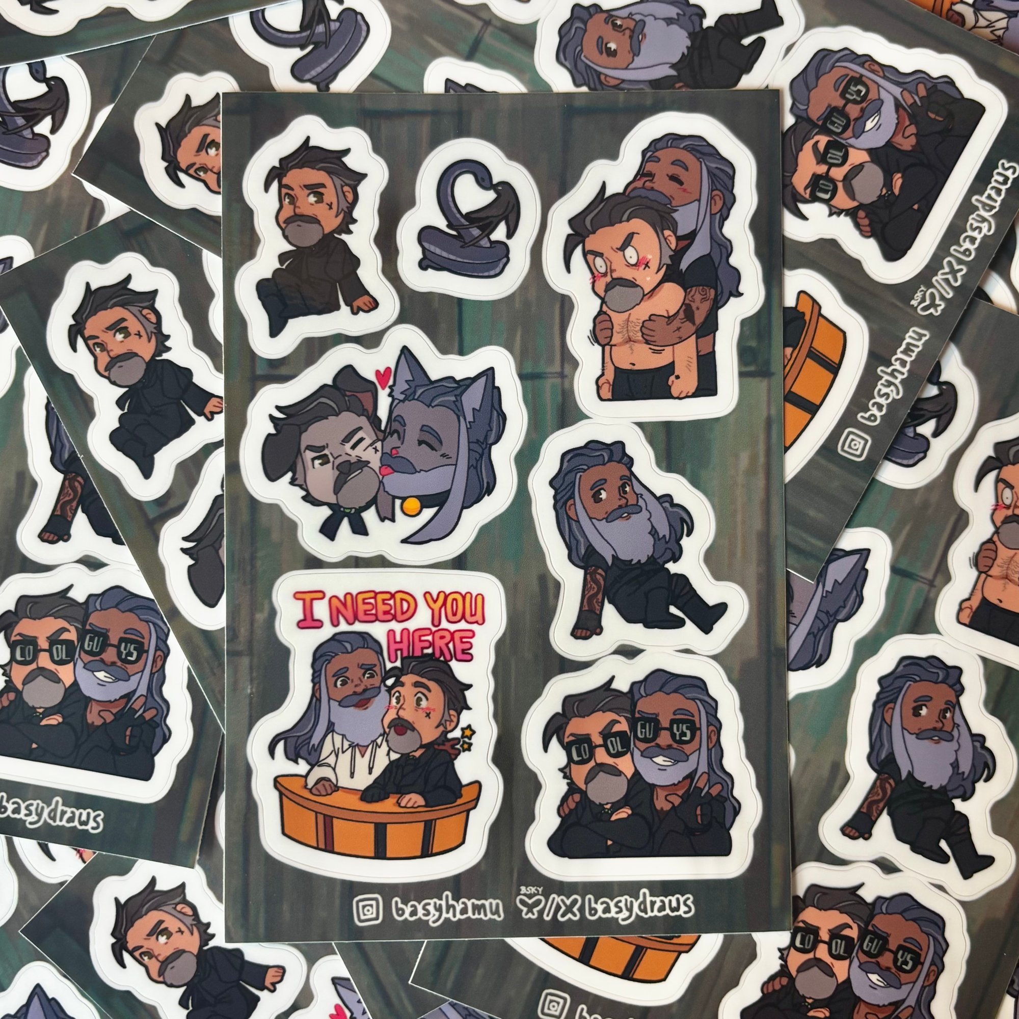Sticker sheets ordered with the permission of @basydraws on bluesky!